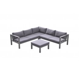 The Armen Living Marina contemporary patio set is the perfect bar arrangement for any modern outdoor living space. The Marina set features 4 low back barstools and 1 columned bar table. All featured items are made of lightweight, yet durable aluminum, allowing for easy arrangement without compromising on quality. The Marina stools have a waterproof gray sling textilene mesh seat and back, providing comfort while presenting a stylish contemporary aesthetic. The bar table features a square base and stylish teak wood top, ideal for stacks and drinks. The Marina set is available in a gray powder coated finish and gray upholstery.