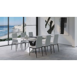 • Maestro Extension Dining Table - White Glass Top / White Steel Base - Unextended 3 Pcs