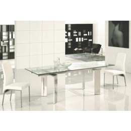 The Casabianca Geneva Dining Table is an extendable elegant glass dining table. It has chromed legs. This dining table features a clear tempered glass top. It is a beautiful fixed-top table to fall in love with.