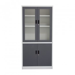 These new NOVA QwiK Metal storage bookcase by Diamond Sofa offer storage and security and in a contemporary design with a Dark Grey front and Off White contrasting trim. Premium powder coated paint process provides a durable, attractive and scratch resistant finish. Key lock entry for added security on the Tempered Glass front doors. Three Adjustable interior shelves provides ample storage. With the NOVA QwiK engineering, assembly is a snap and you'll find the ideal solution to your storage needs in your office, home, school or institution.