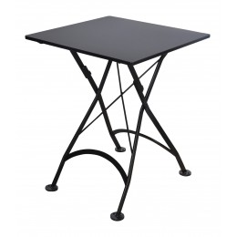 This folding dining set by Furniture Designhouse has been designed and hand-forged in Europe by 'old world' artisans, using the finest materials and built to last a lifetime. From the hand-crafted steel frames and wood seating and dining surfaces, to the standard architectural finish that is UV, Scratch and Salt-spray resistant… this lovely French Café bistro furniture is second to none and backed by an industry leading three-year warranty! Table top is an ultra durable solid metal surface. Chair slats are African Teak.