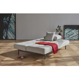 Innovation Living Ran D.E.L. Sofa With Walnut Arms/Legs is at the forefront of Danish contemporary style and modern engineering. It is equipped with a patented comfort pocket spring mattress and Walnut Arms/Legs. This piece modern looking chrome legs. The "back rest" mechanism allows for the Innovation Living Ran D.E.L. Sofa With Walnut Arms/Legs to function as a sofa, bed or stylish chaise.