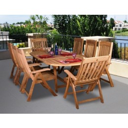 Great Quality, elegant design patio set, made of 100% high quality Teak wood. Enjoy your patio with style with these great sets from our Amazonia Teak outdoor collection. Free Feron's Wood Sealer/Preservative for longest durability. Penetrating oil that works great against the effects of air pollution salt air, and mildew growth. For best protection, perform this maintenance every season or as often as desired