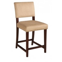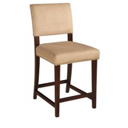 Create a contemporary or classical look in your kitchen, dining or home pub area with the sleek shape and style of this medium walnut finish 30" Brook Counter Stool. Solid wood legs give this courtly stool additional strength ensuring years of everyday use. The padded cushion and seat back provides optimum comfort for you and your guests and is topped with durable caramel colored vinyl that is stain resistant, fade resistant and features tightly woven threads that won't break, mat or peel. Classic nail head trim accents the stools lines. 275 pound weight limit.