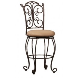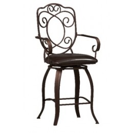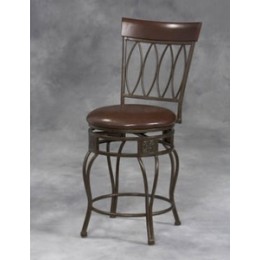 The elegance and unique style of this 24" Circles Back Counter Stool will carry throughout your kitchen, dining, or home pub area. Crafted of metal and highlighted with subtle curves and a distinctive back, this stool is a positively striking addition to your home. The cushion is piled high for extra comfort and covered in a wipe clean brown vinyl which is resistant to everyday wear and tear making this stool versatile for any gathering area. Finished in brown with subtle black brush strokes and a brown wood accent.