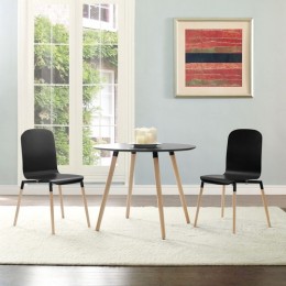 This casual three piece dining set offers a classic styling that will compliment any decor. Perfect for small spaces, the rectangle dining table features an ample surface area with solid wood legs. The comfortably padded Parsons dining chairs are finished in an elegant and durable grey linen material. The simple lines of this dining set enveloped with a rich black finish create a timeless look that you will love.