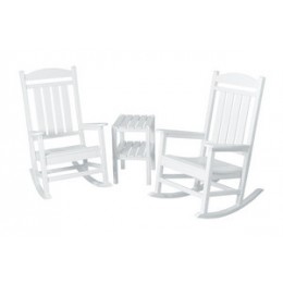 This traditional rocker is enhanced with unique detailing that gives it both warmth and sophistication. Eco-friendly product with over 90% recycled materials. Constructed of durable HDPE Poly-Wood® lumber that provides the look of painted wood without the maintenance. Poly-Wood® lumber requires no painting, staining, waterproofing, or similar maintenance. Solid, heavy-duty construction withstands nature’s elements. Poly-Wood® lumber does not splinter, crack, chip, peel or rot and it is resistant to corrosive substances, insects, fungi, salt spray and other environmental stresses. Commercial grade stainless steel hardware with additional Xylan® protective and cosmetic coating. Easy to clean with soap and water. Contoured for greater comfort. Available in 6 attractive, fade-resistant colors. 20-year limited residential warranty; 1-year limited commercial warranty. Made in the USA. 26.5"W x 34"D x 47"H