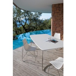 Kube Dining Side Chair is a classic and elegant furniture, pure and chic, designed by RMP associates. Weather-resistant, with a combination of noble materials (stainless steel and glass), and pure geometric shapes, this collection has been designed for a dining area and an informal living space, indoors as well as outdoors.