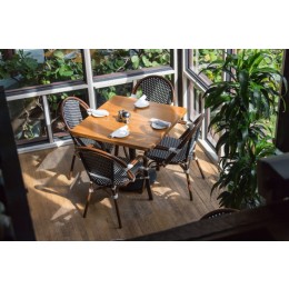 Our Paris Chair offers durability, flexibility, and stackability. With a simple yet elegant design it will surely stand out in any area. Constructed using a fully-welded, bamboo painted aluminum frame, that is powder coated and wrapped in our proprietary all-weather Commercial Grade Synthetic Resin Duraweave™ Wicker (HDPE).