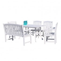 Vifah Bradley Outdoor 6-piece Wood Patio Dining Set with 4-foot Bench in White - V1337SET19