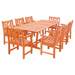 Vifah Malibu Outdoor 7-piece Wood Patio Dining Set with Extension Table - Backless benches & Chairs - V232SET31