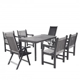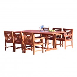 Vifah Malibu Outdoor 7-piece Wood Patio Dining Set with Extension Table With Backless Benches & Chairs - V232SET30