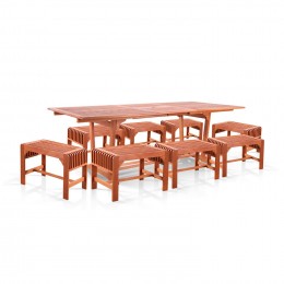 Vifah Malibu Outdoor 9-piece Wood Patio Dining Set with Extension Table - V232SET32