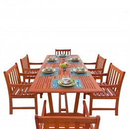Vifah Renaissance Outdoor Patio Hand-scraped Wood 7-piece Dining Set with Reclining Chairs - V1300SET11